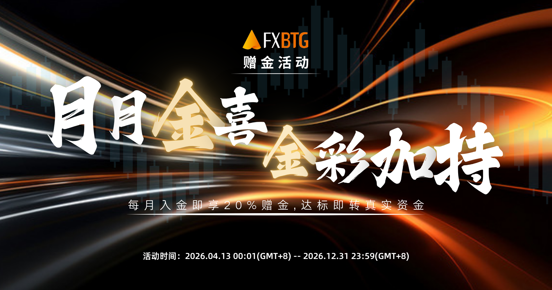 每月入金即享20%赠金,达标即可获得手数奖励!